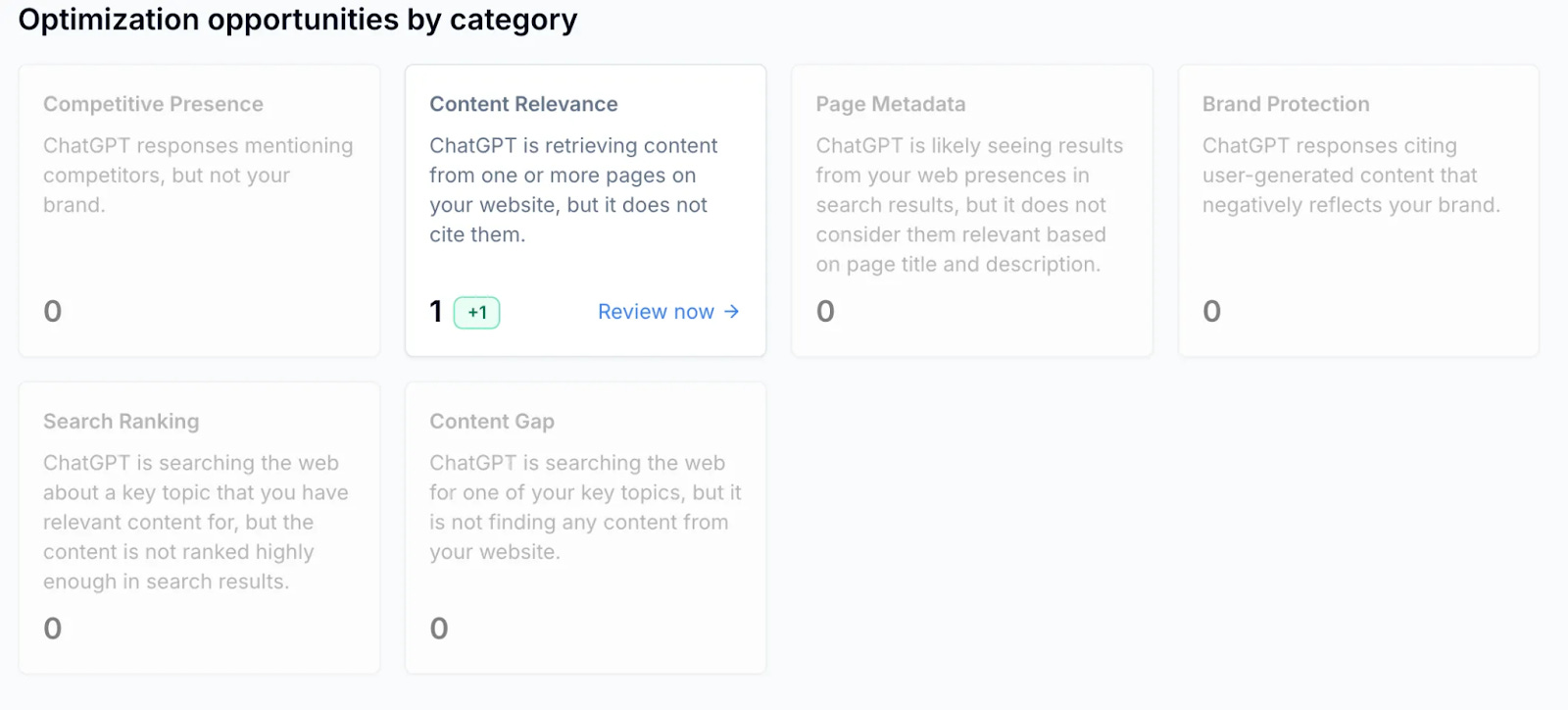 In my testing, it surfaced something interesting: ChatGPT was pulling content from our site as a source, but not explicitly mentioning us. Scrunch offered optimization suggestions and showed which tools were being cited instead.