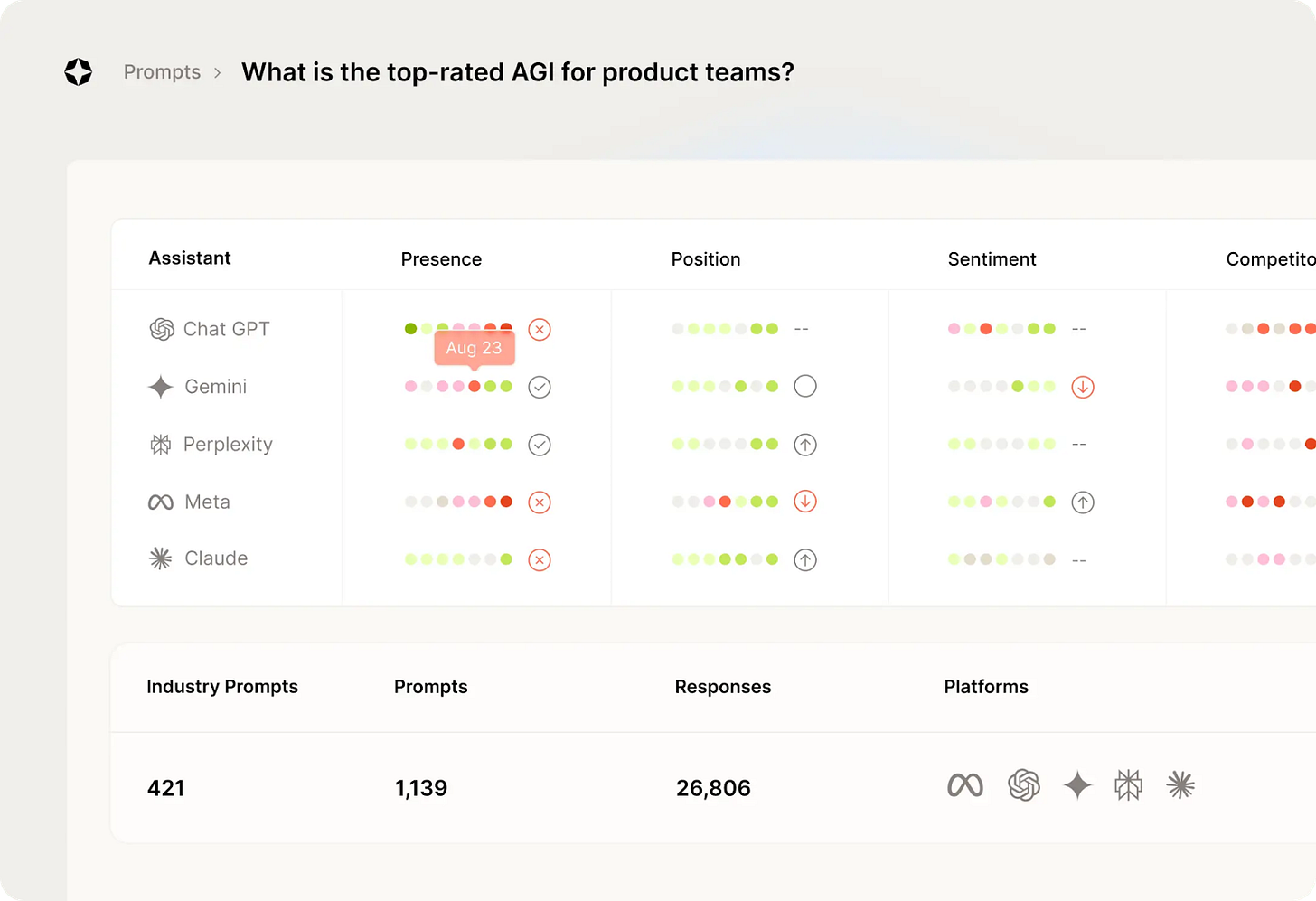 Yes, it surfaces the data. But again, you can track this manually. Run the same prompt yourself, note which brands get mentioned, and you have the same information. The only advantage is that Scrunch aggregates this across multiple prompts in one dashboard.