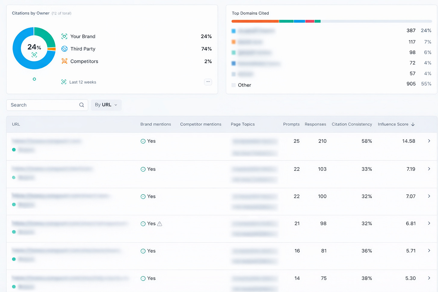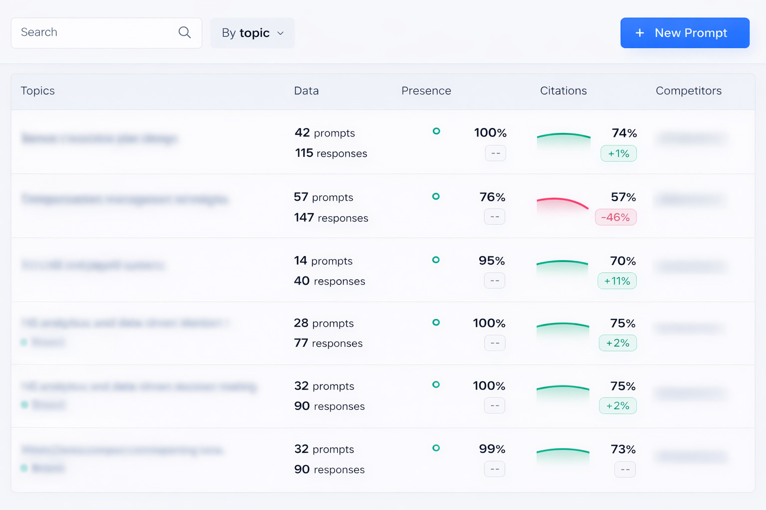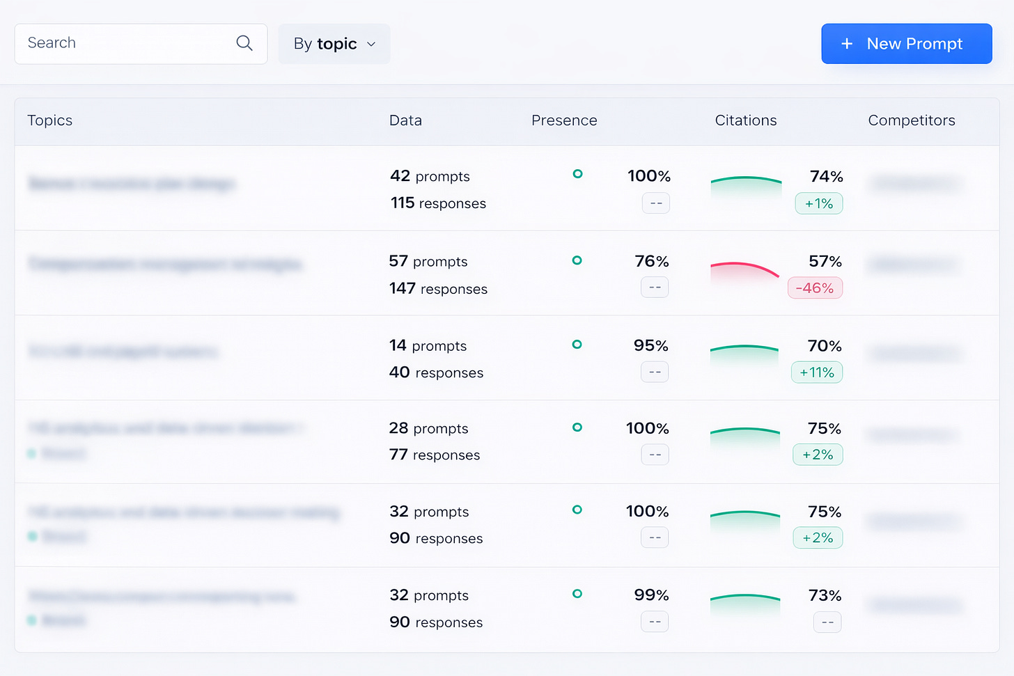 Consolidated tracking in one place – If you’re tracking AI visibility across multiple prompts, competitors, and engines, having everything in one dashboard saves time over manual tracking. You’re not jumping between ChatGPT, Perplexity, and Gemini to check citations.